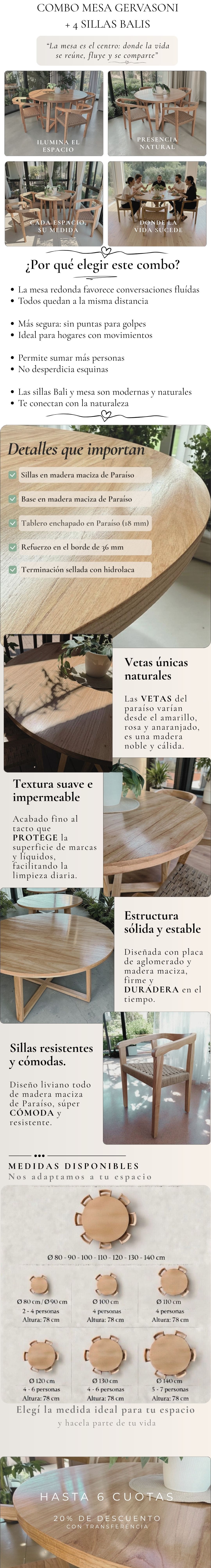 Combo Mesa Gervasoni con regrueso en Paraíso + 4 Sillas balis tejidas