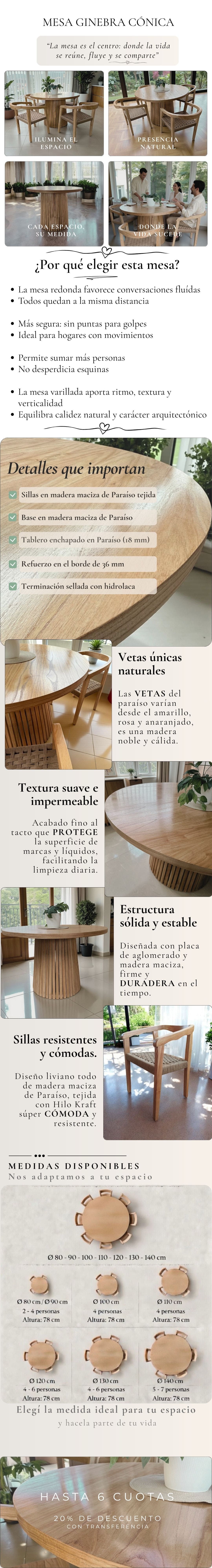 COMBO Mesa Ginebra cónica con regrueso en Paraíso + 4 Sillas balis tejidas (seleccionar diámetro)