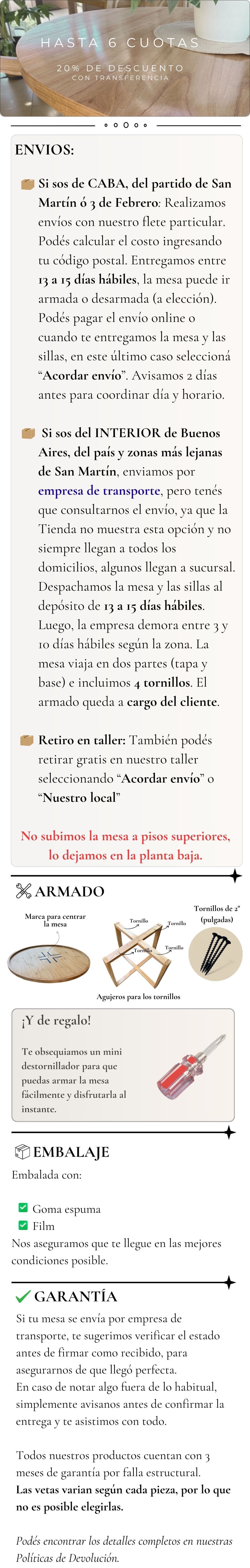 20% de descuento abonando con transferencia bancaria/ Descuento del 5% en sillas y sillones seleccionados a partir de 2 unidades.