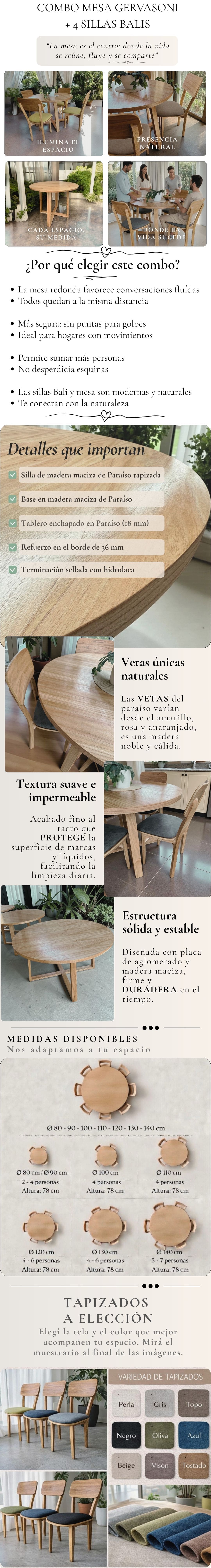 COMBO Mesa redonda Gervasoni con regrueso + 4 sillas Retro Curvas (elegir diámetro)