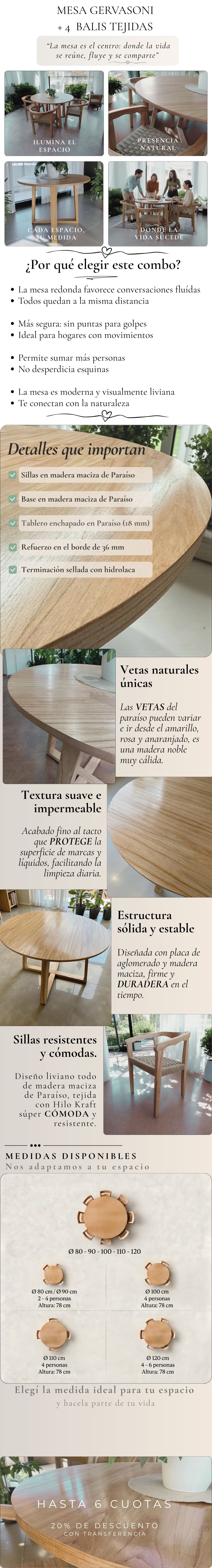 COMBO Mesa redonda Gervasoni y 4 Sillas con asiento hilo kraft