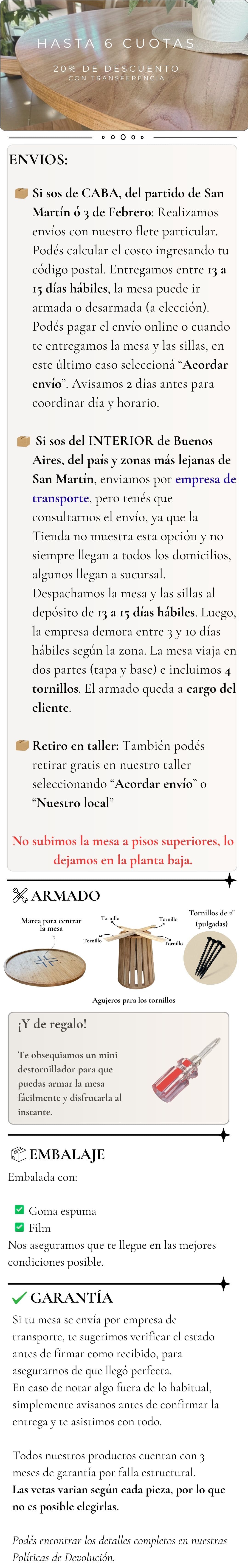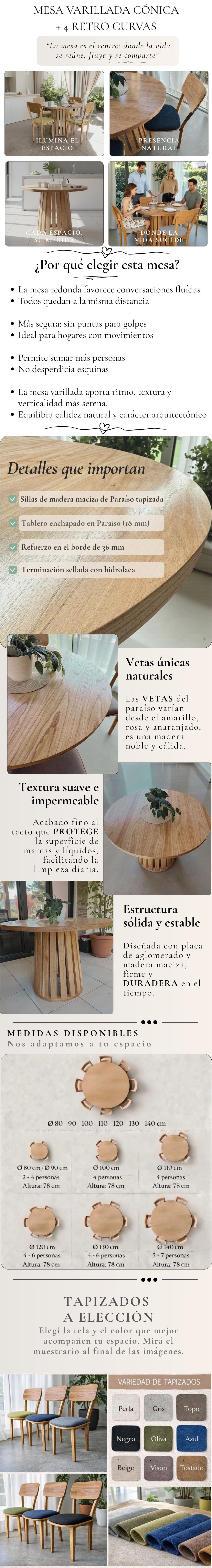 COMBO Mesa Varillada con regrueso en Paraíso + 4 Sillas Retro Curva (seleccionar diámetro)
