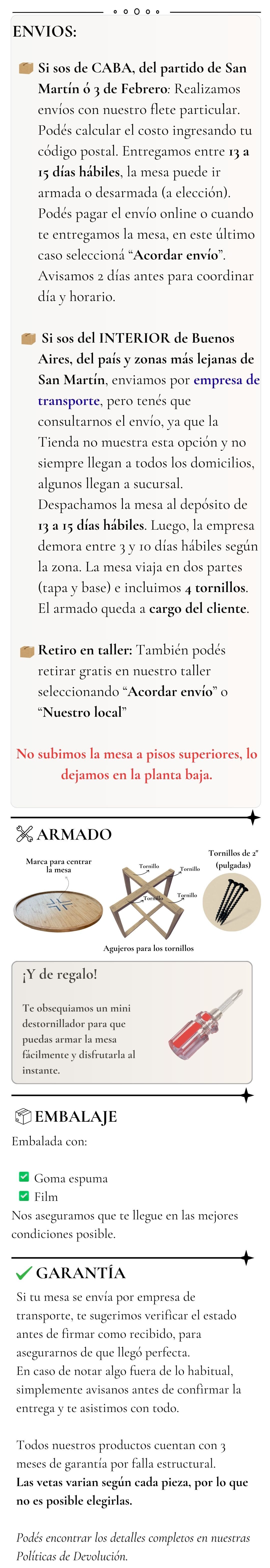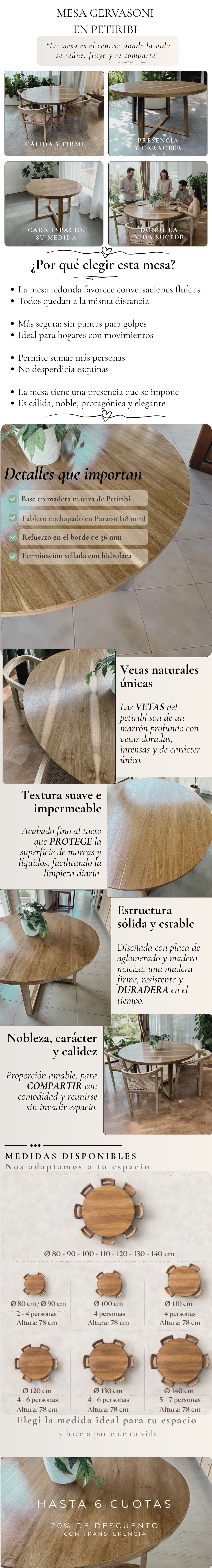 Mesa redonda Gervasoni en Petiribí con regrueso (seleccionar diámetro)
